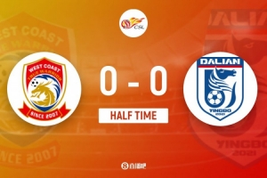 伤停补时2分钟。上半场比赛结束,青岛西海岸0-0大连英博。